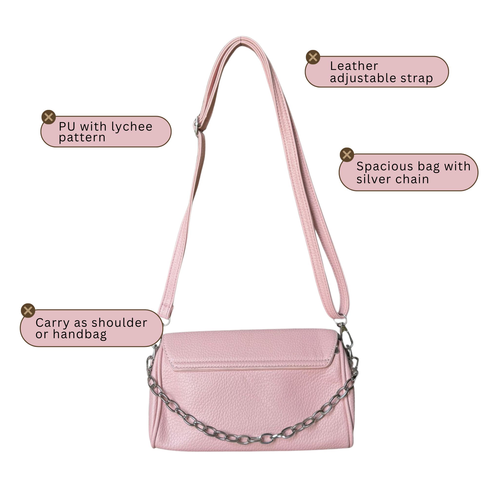 - Silver chain strap for a chic, glam vibe